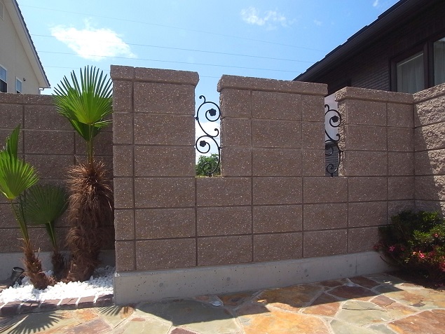 セミクローズされたエントランスは門柱・壁・アプローチと一体感あるアジアンテイストに仕上げました!